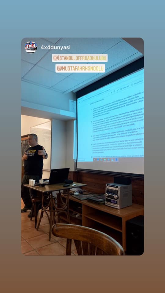 10/03/202011/03/2020 10 Mart 2020 tarihinde kulüp lokalimizde düzenlenen off-road, ekspedisyon ve uzun mesafeli kara seyahatleri için önemli olan rota oluşturma ve konvoy kuralları eğitimi üyemiz Mustafa Karahasanoğlu tarafından verildi.